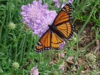 Copycat Monarch?Not Exactly. This is a Viceroy butterfly(Limenitis archippus) Similar to the Monarch It is distingushed by the Black line,that crosses its wings. At this time,I'am not able to show the difference between the male and female viceroy.