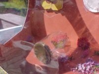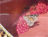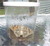 The butterfly in my continer had done all that and needed to be put into her new home so I took the top off the container and laid the container with the new butterfly in it on the floor of the new home.Photo below. | |